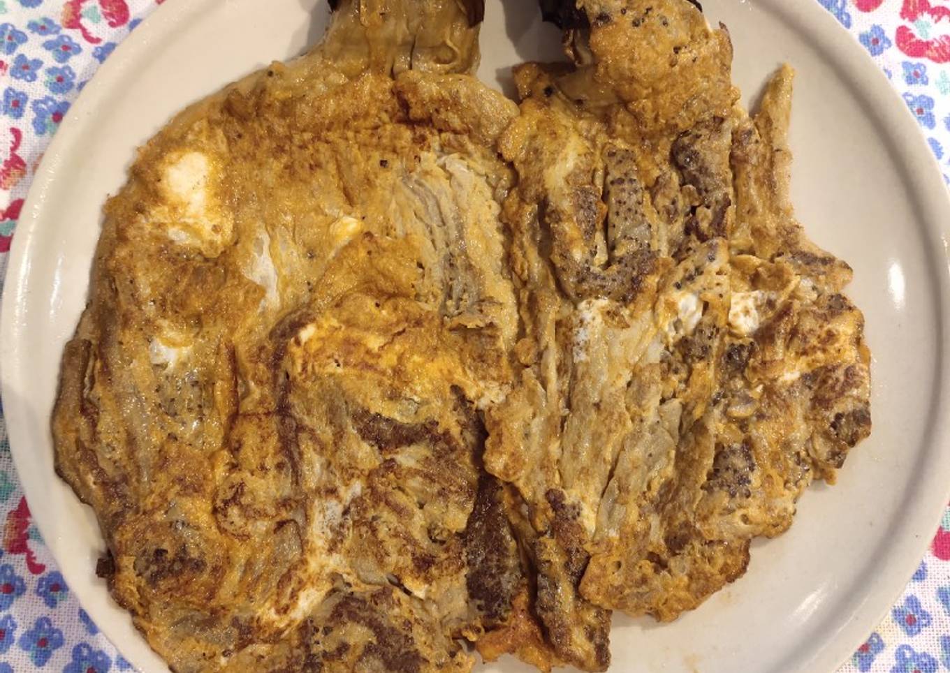 - Place in a plate then gently press with fork. Pour beatin eggs then pour over eggplant.