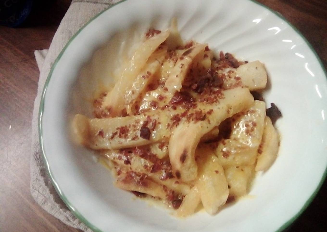 As for the number of servings that can be served to make Cheesey bacon Fries 🍟 is 2 servings. So make sure this portion is enough to serve for yourself and your beloved family.